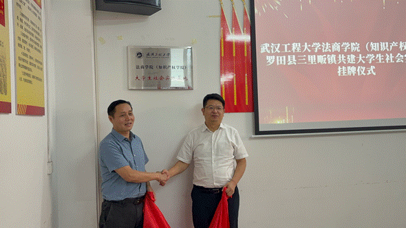 本网讯(通讯员:唐晨宸 刘天睿)6月13日,武汉工程大学MK体育官方网站(知识产权学院)院长金明浩、党委副书记孙勇、听涛社会实践团一行赴黄冈市罗田县三里畈镇开展社会实践基地共建仪式。罗田县三里畈镇党委书记徐应超、镇党委委员、人武部长邱秋等出席活动,双方围绕校地合作、助力地方经济发展事宜进行友好交流。
