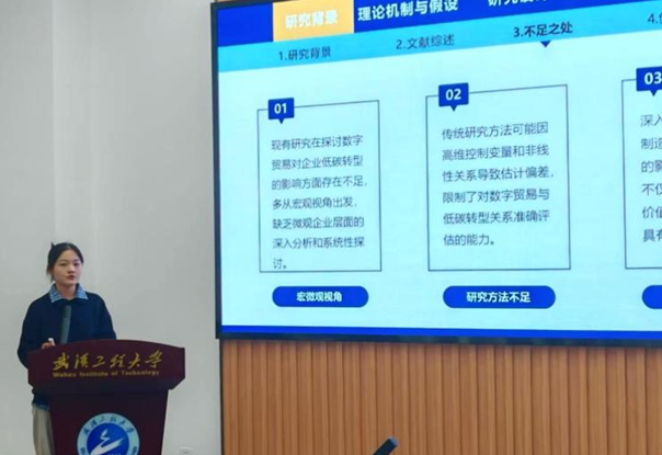 本次科报会团队均展现出扎实的科研功底与鲜明的创新思维。法学组中,从跨国知识产权纠纷中的禁诉令制度构建,到检索类大模型训练数据合理使用边界界定,从智能合约对意思自治原则的挑战与调适,到NFT数字作品版权保护机制创新,14项成果既扎根经典法律理论,又紧跟数字经济、涉外法治建设等时代步伐,展现了“立足理论、服务实践”的科研态度。各团队通过实证分析、案例论证等方式,全面呈现了研究成果的学术深度与应用潜力。金融组的研究同样亮点纷呈,2025级张岩团队通过双重差分模型实证分析数字贸易对企业碳减排的驱动效应,2023级贺格格团队揭示产业协同集聚促进区域低碳转型的内在逻辑,2024级郑永昕团队从空间经济学视角探索AI技术对省域OFDI的影响,研究方法涵盖空间计量、双重差分等主流实证模型,部分成果提出的绿色信贷贴息优化、制造业低碳转型路径等建议具有较高政策参考价值。