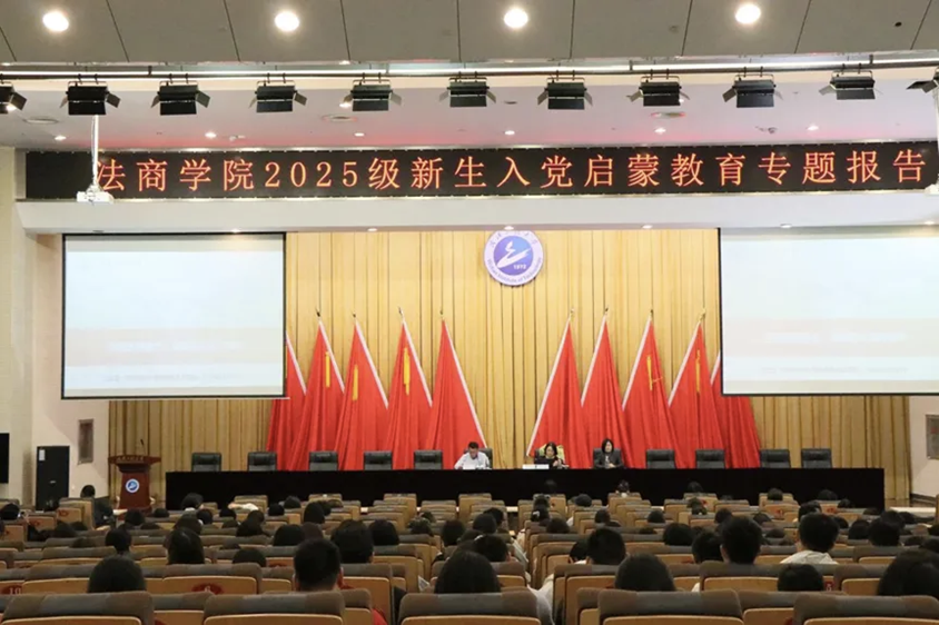 为引导2025级新生坚定入党信念,扣好人生“第一粒扣子”,10月23日,学院在四教多功能报告厅开展新生入党启蒙教育活动。学院党委书记陈朝娟、党委副书记孙勇、党务干事贺阳及全体2025级本研新生参加,活动由孙勇主持。